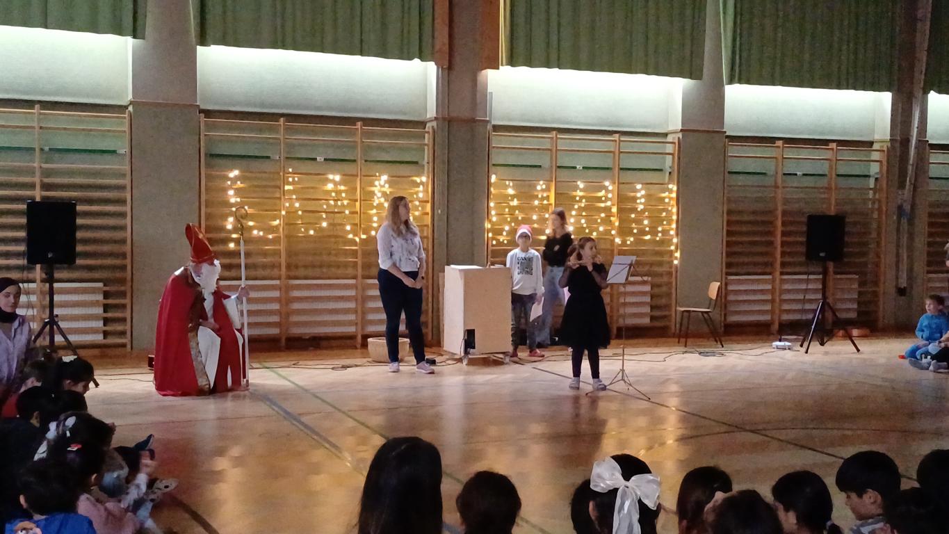 Am Freitag hatten wir einen besonderen Gast in der Schule: Der Nikolaus kam zu Besuch! Die Kinder warteten schon voller Freude und ein wenig Aufregung, als er den Turnsaal betrat. Die 3. und 4. Klassen gestalteten das Nikolausfest mit stimmungsvollen Liedern.