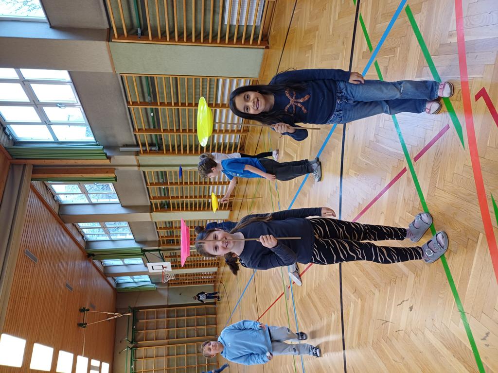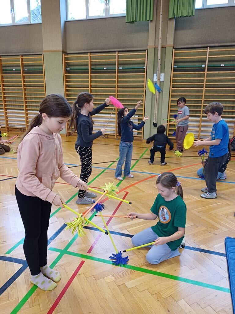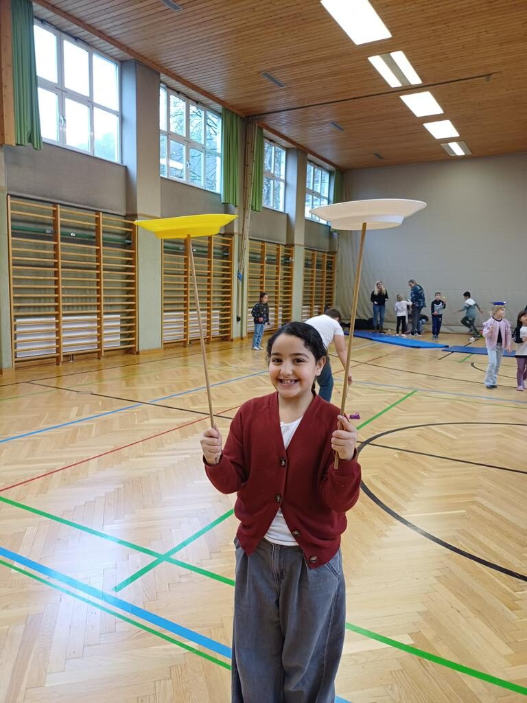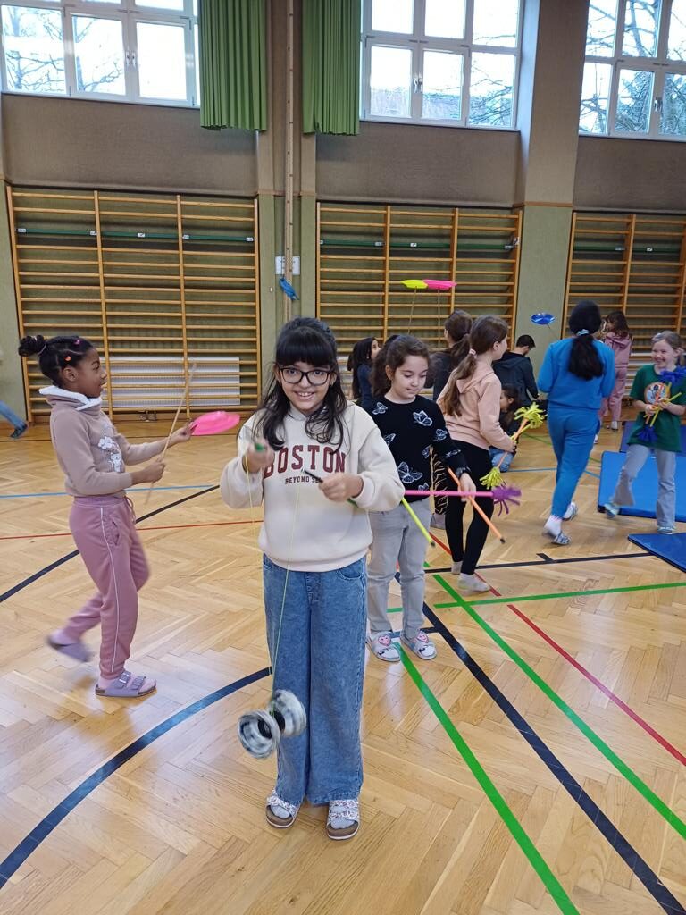 Am Mittwoch war der Jongleur Andreas Faschinger bei uns zu Besuch. Er zeigte den Kindern die faszinierende Kunst des Jonglierens. Die Schülerinnen und Schüler durften selbst ausprobieren und mit Bällen, Tüchern und Keulen üben. Alle hatten viel Spaß und lernten, dass man mit Geduld und Übung tolle Dinge schaffen kann. Es war ein schwungvoller und lustiger Vormittag!